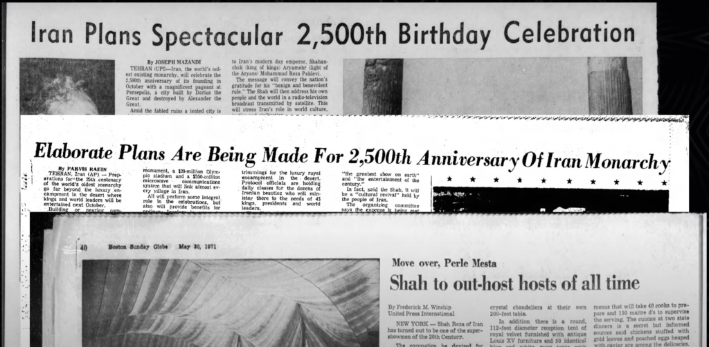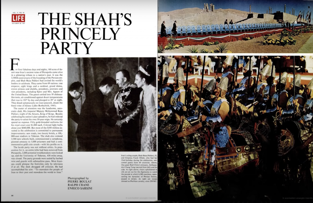 In the 1960s, Iran was ruled by this person, who we will call Shah henceforth. Shah had absolute power in the country. Political freedom and free speech was limited. Iran was also quite poor. Instead of focusing on the standards of living, the Shah had the idea of throwing a massive party for the world’s leaders.