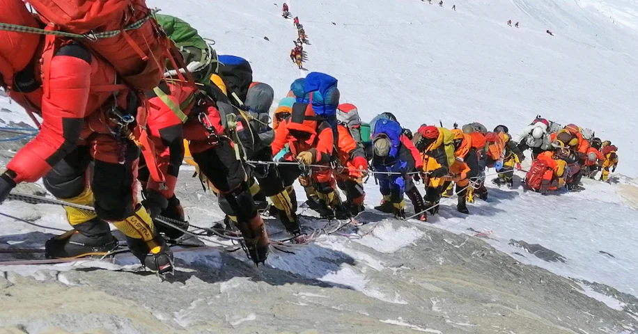 Overcrowding has become a serious situation on Everest as bottlenecks at difficult points make it difficult to climb. Climbers are literally queuing up. To climb Everest these days, it costs $70,000 and two months. But with many climbing agencies operating in the region, many inexperienced climbers attempted to summit. This overcrowding has sadly made Everest into a tourist destination.
